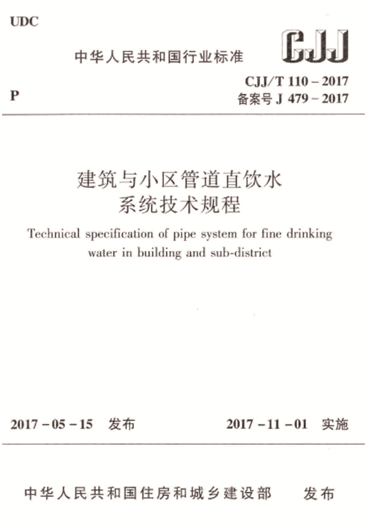2017年,中國住房和城鄉建設部發布並實施的《建築與小區管道直飲水係統技術規程》(CJJ/T110-2017),於2017年5月15日發布,2017年11月1日實施,該規程明確了直飲水管道采用不鏽鋼管,詳見第9頁5.0.15條“管材、日皮软件下载和計量水表的選擇應符合下列規定:1 管材應選用不鏽鋼管、銅管等符合食品級要求的優質管材……”